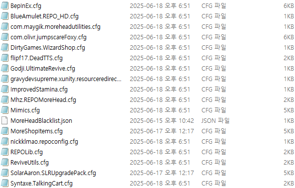 BepInEx\config는 공통이고 그 뒤에 모드 이름을 찾아서 들어가시면 됩니다.