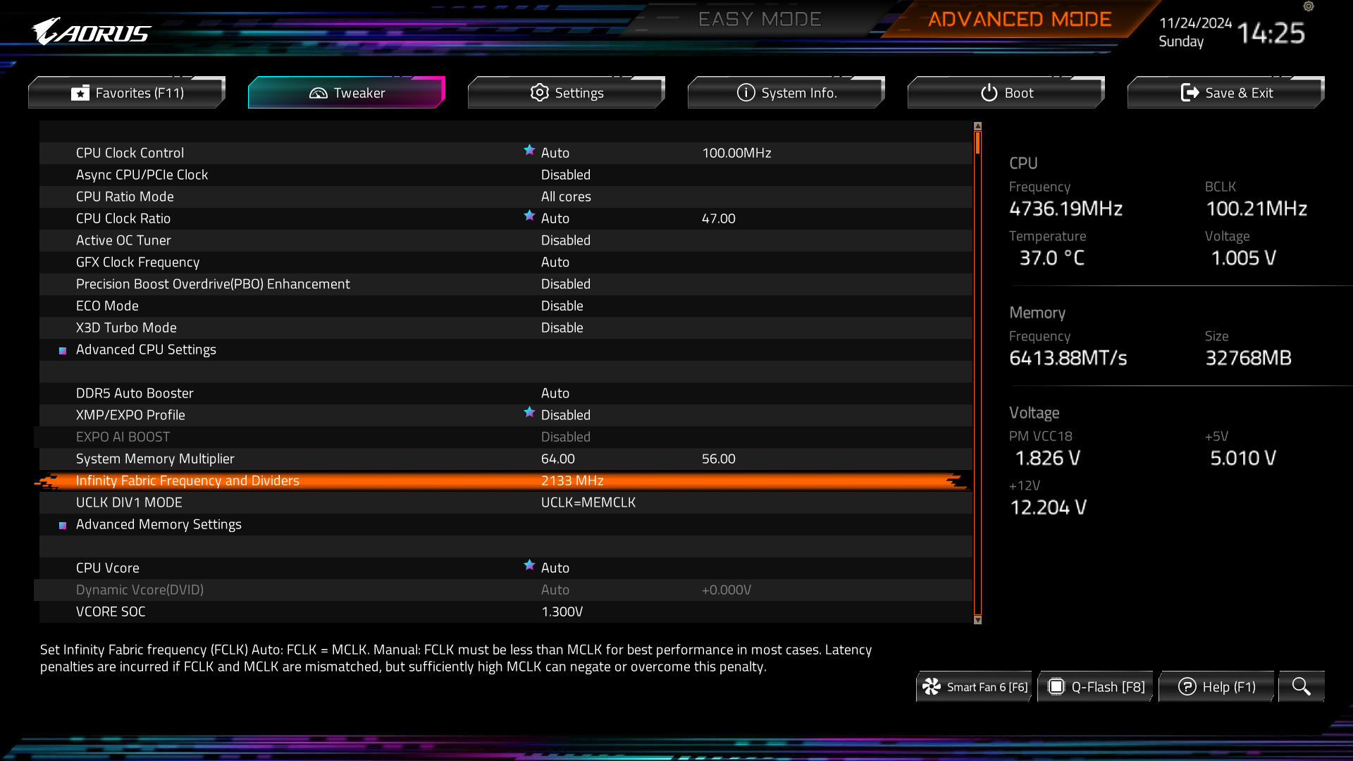 | Infinity Fabric Frequency | 2133 Mhz | 2000 ~ 2133 |