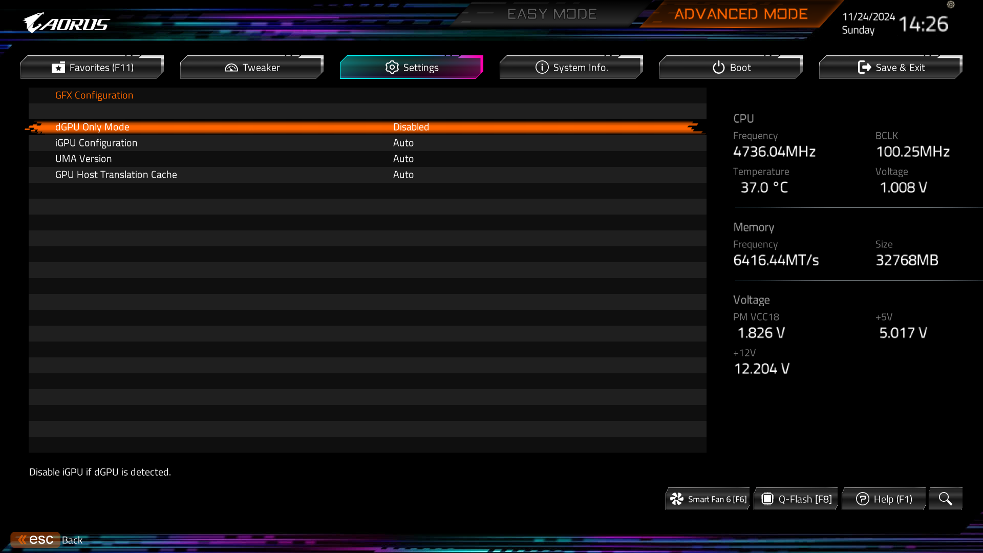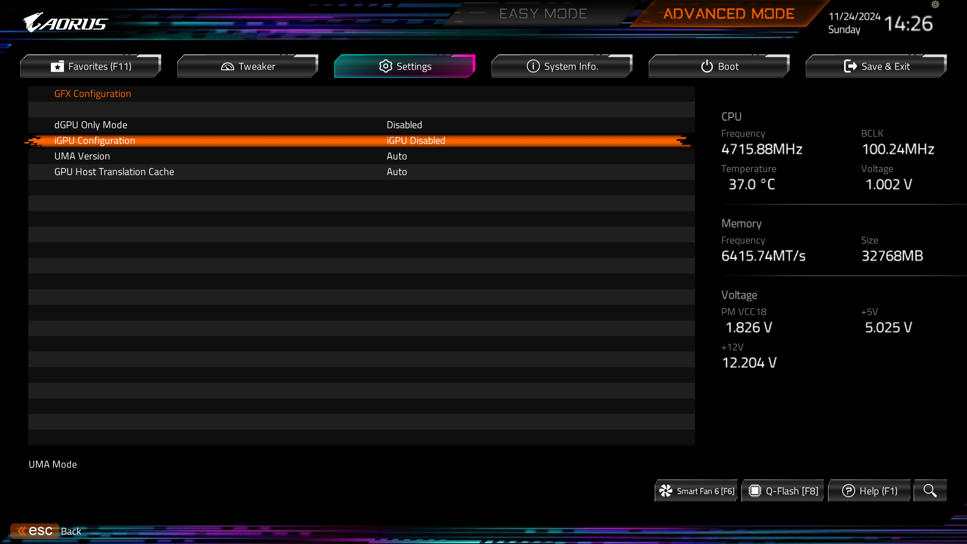 기가바이트의 경우 FastBoot는 꺼져있어서 넣지 않았고 인텔과 다르게 리사이즈바가 켜져있는데 기본값인데 이 부분은 취향 것 사용하시면 됩니다.